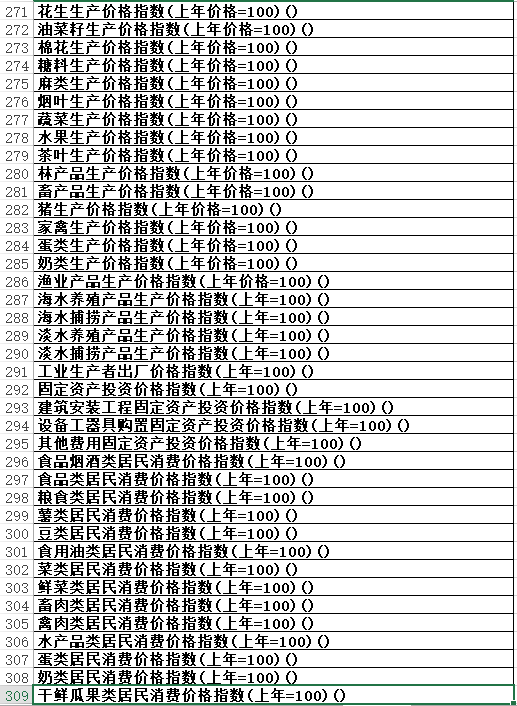 价格指数指标更新至2022年的指标有:
