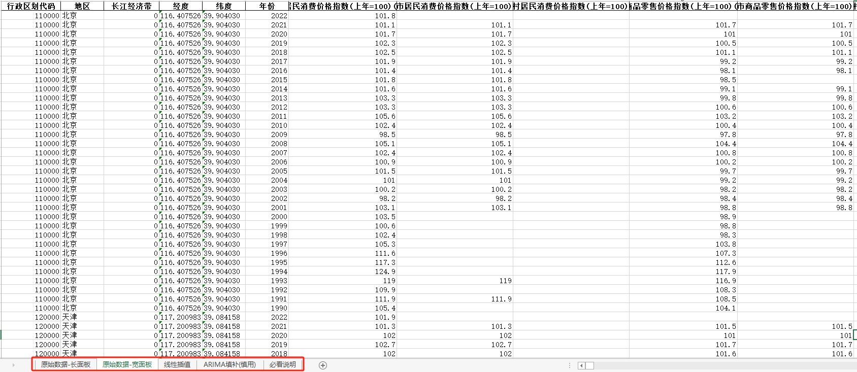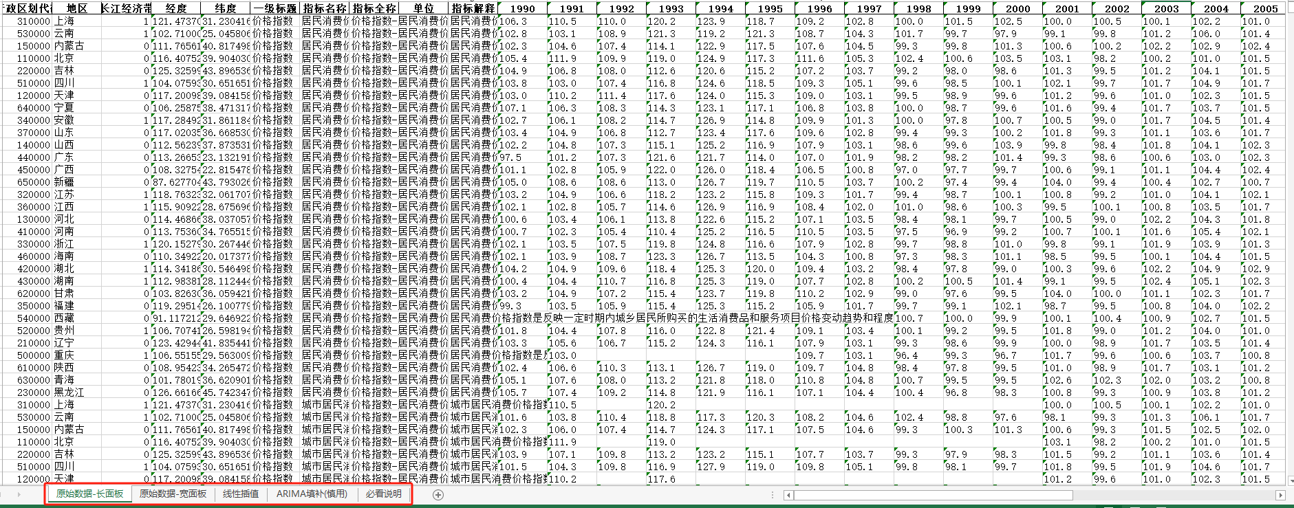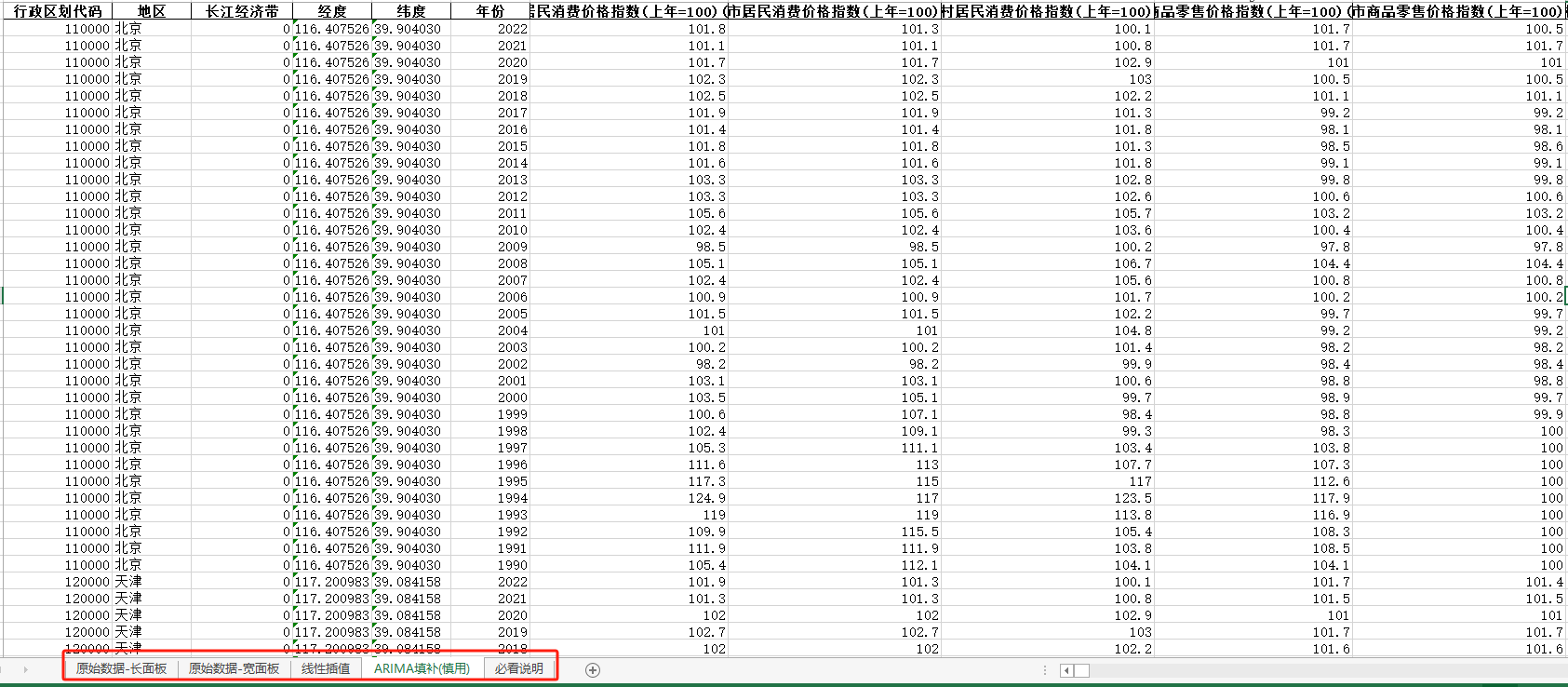 (长面板+宽面板含指标说明)ARIMA填补无缺失