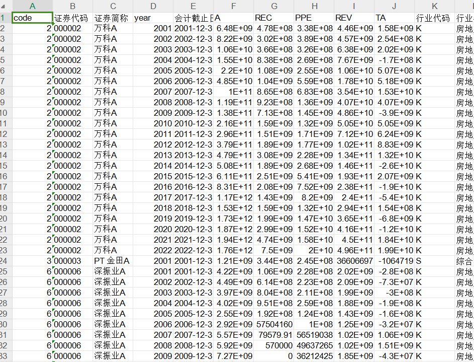 原始数据为A股上市公司2000-2022的数据,由于指标计算需要用到上一年的数据,因此最终回归结果为2001-2022应计盈余管理数据