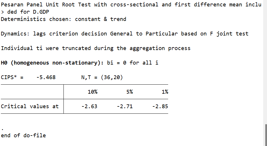 ffffffcccccc 发表于 2024-4-4 10:04 是的,比较CIPS*与三个显著性水平的值,小于则表明显著,但是不知道怎么显示P值。