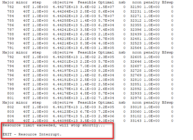 GAMS报错resource limit exceeded,will stop shortly, EXIT - resource interrupt,然后自动退出来了,虽然有结果,但是有问题,dnlp模型,用的minos求解,希望有大佬回答,万分感激!