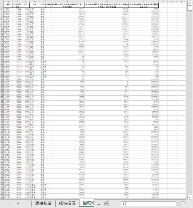 excel数据文件包原始数据(由于多年度指标不同存在缺失值)、线性插值、回归填补三个版本,提供您参考使用。