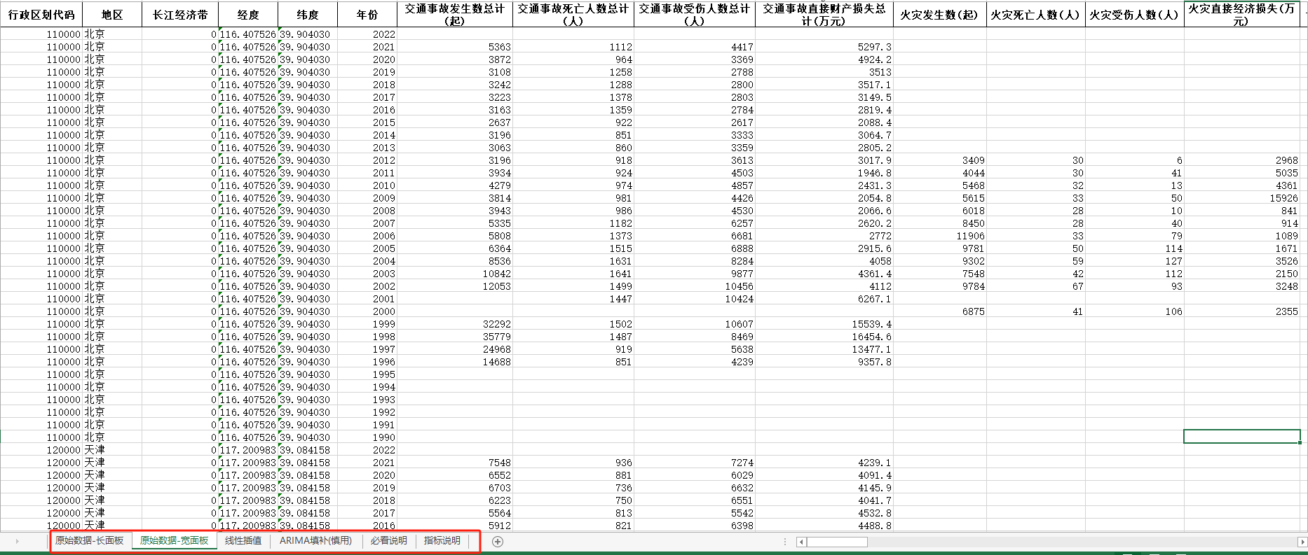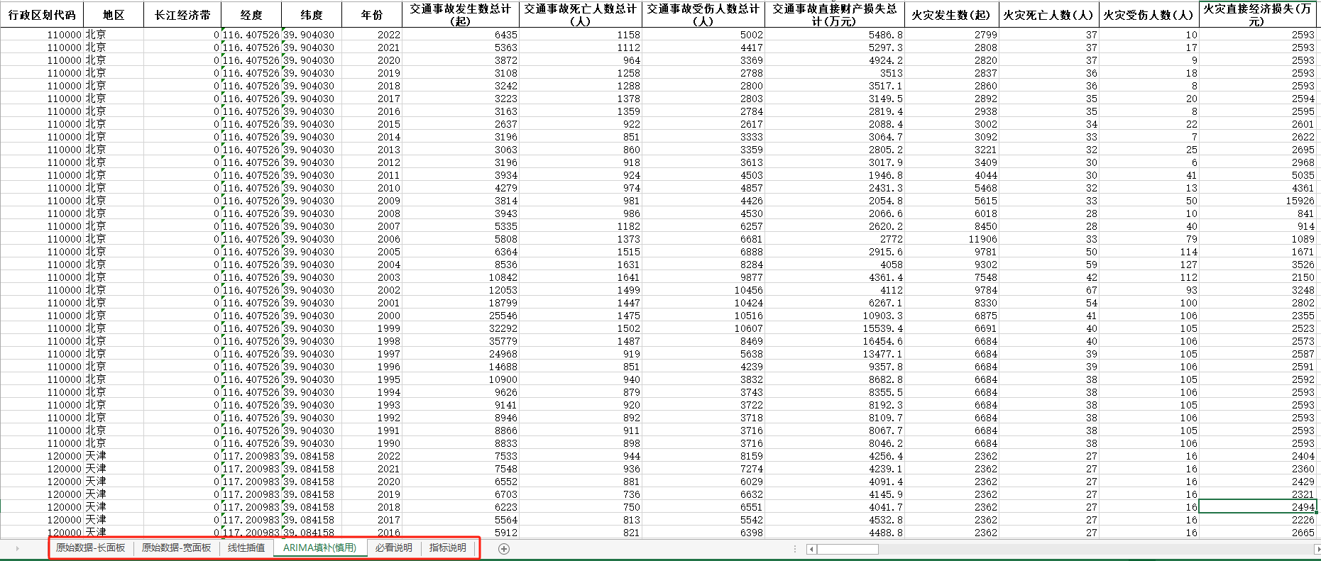 中国省级面板统计数据库(包含四个页签:原始数据-长面板、原始数据-宽面板、线性插值、ARIMA填补四个页签)