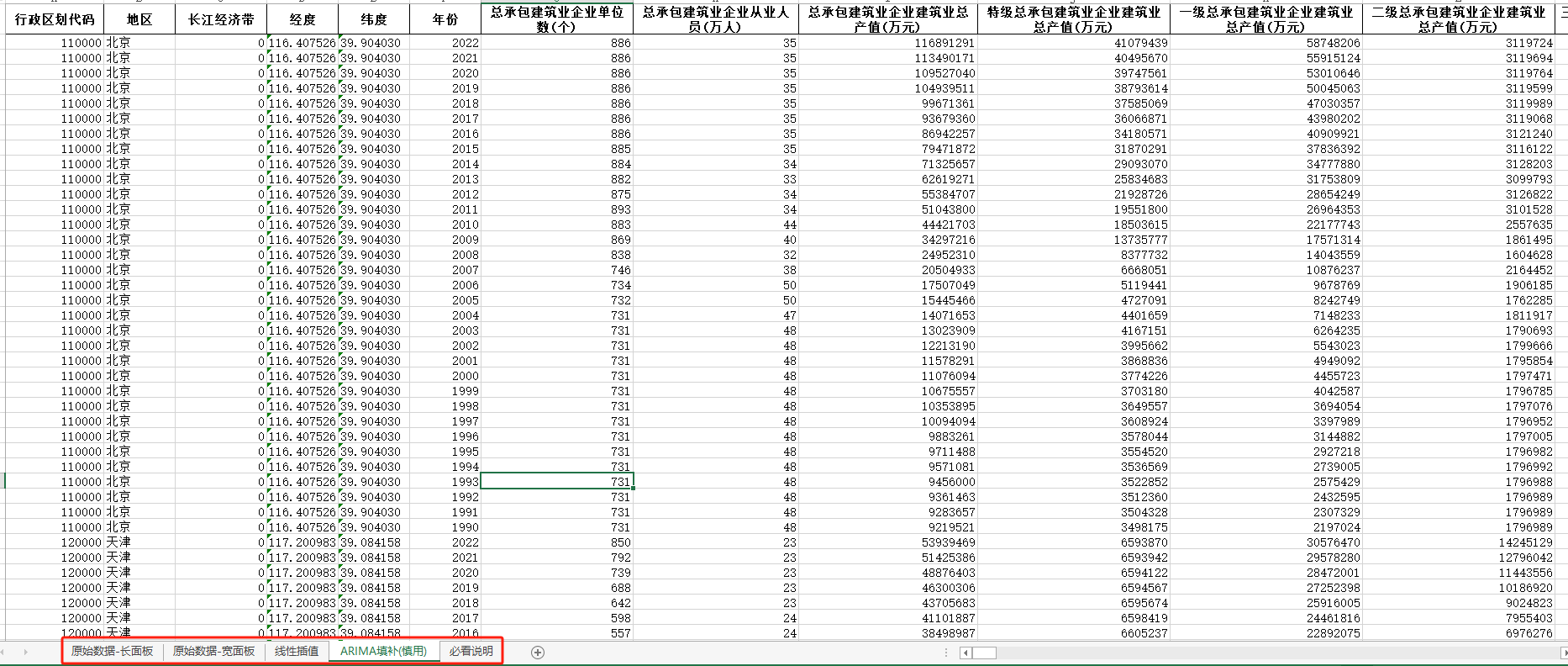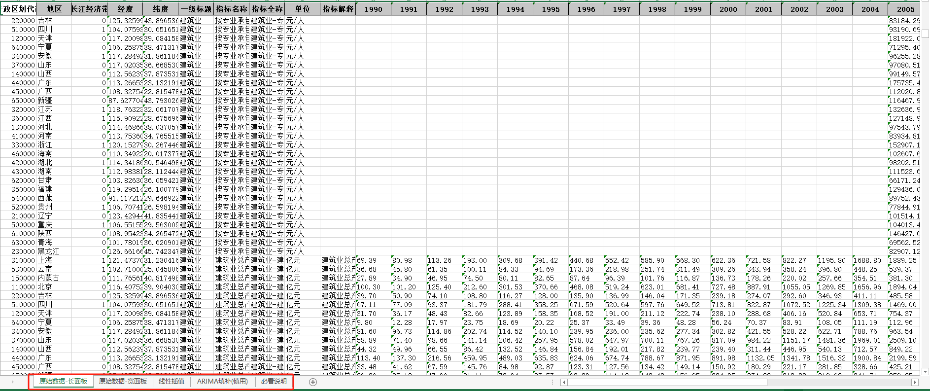 (长面板+宽面板含指标说明)ARIMA填补无缺失
