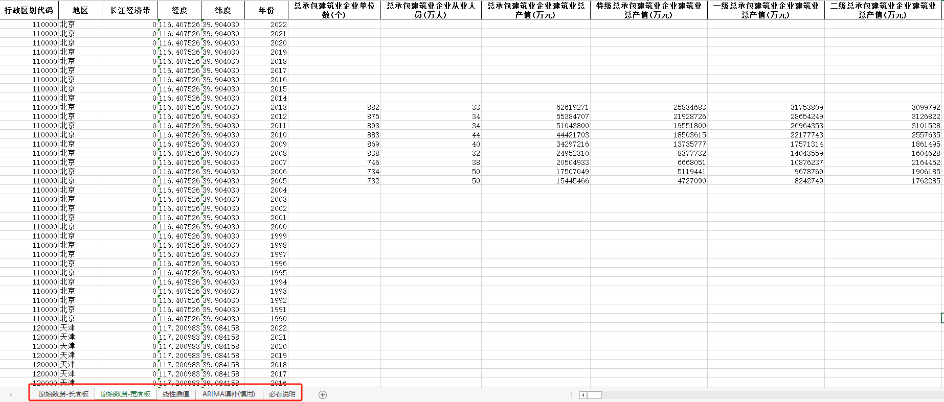 数据年度1990-2022全国31省中国统计年鉴面板数据-建筑业(长面板+宽面板)填补无缺失