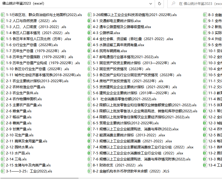 佛山统计年鉴2023(excel格式)