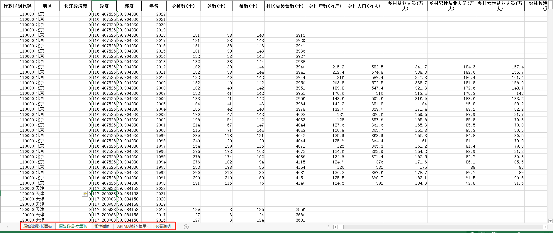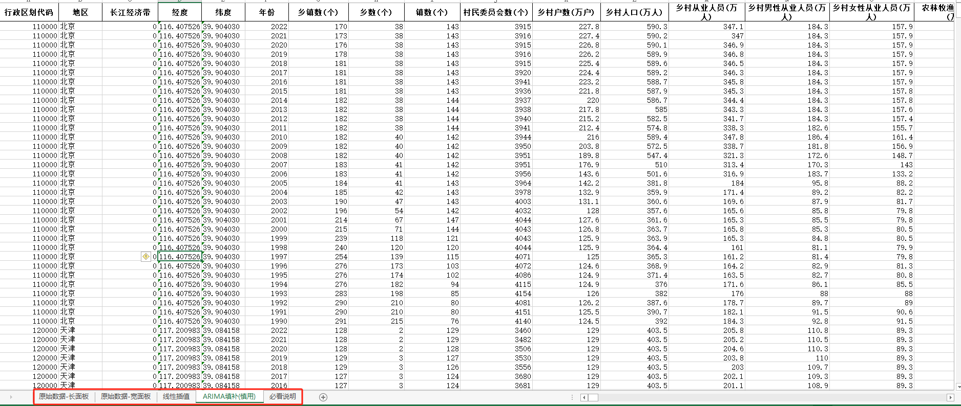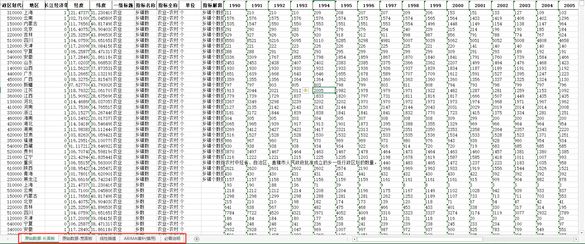 (长面板+宽面板含指标说明)ARIMA填补无缺失