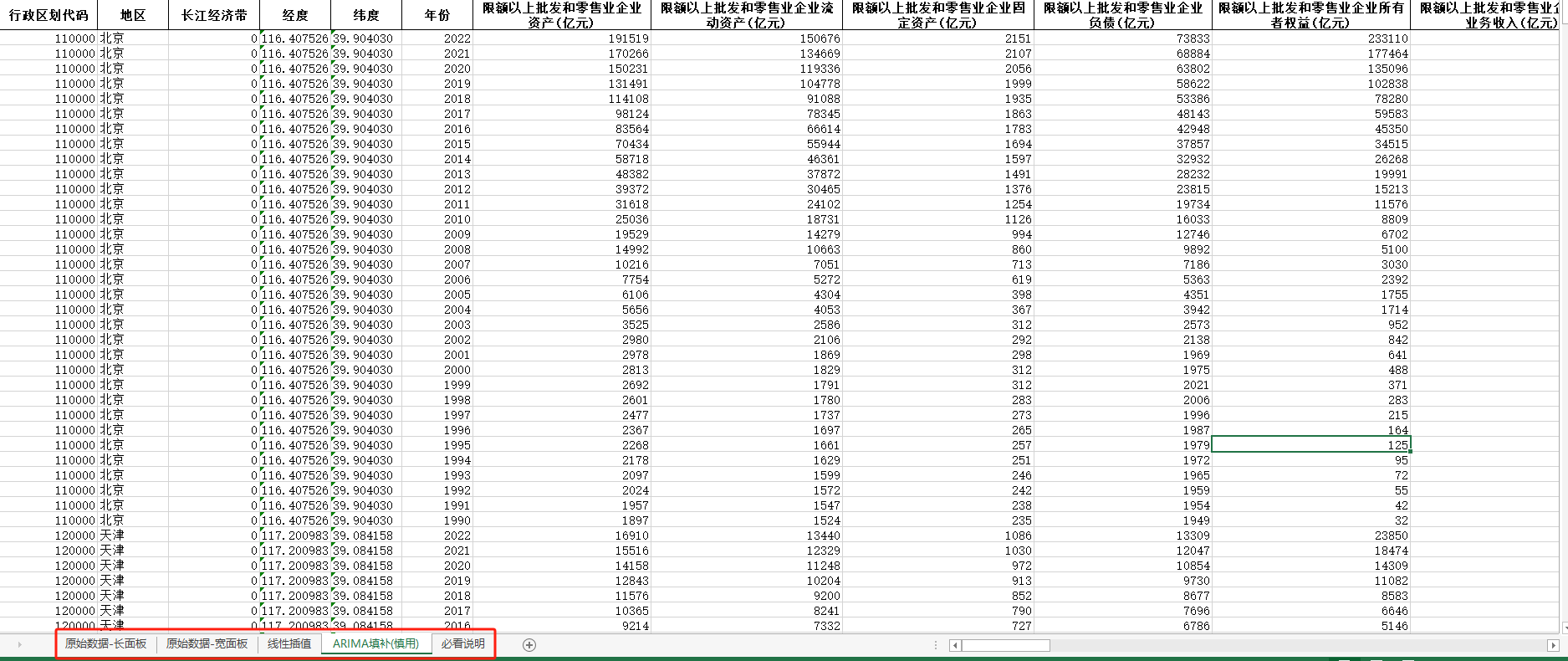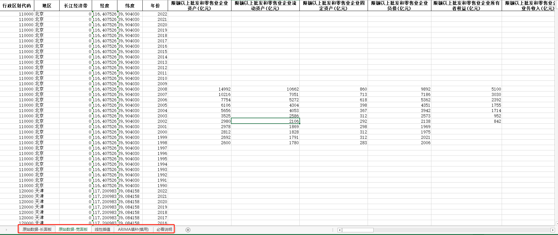 【省级】数据年度1990-2022年全国31省自治区直辖市省级面板数据-批发和零售业(长面板+宽面板含指标说明)ARIMA填补无缺失
