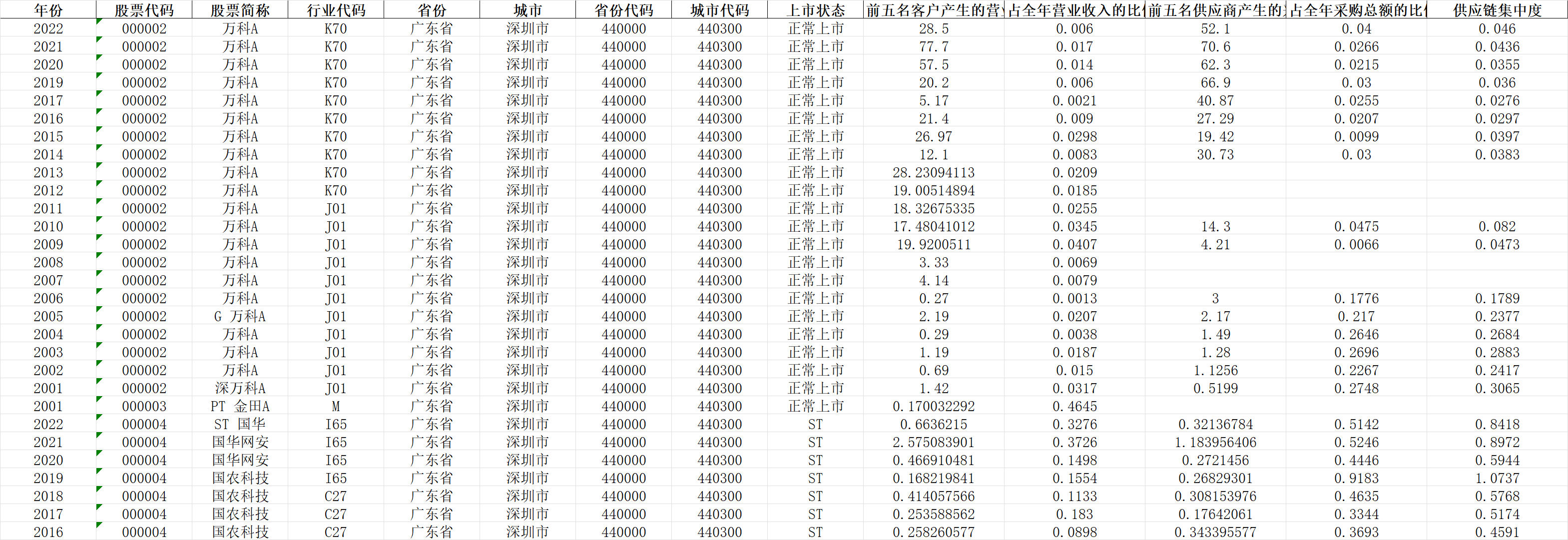 数据说明:包括客户、供应商、供应链集中度