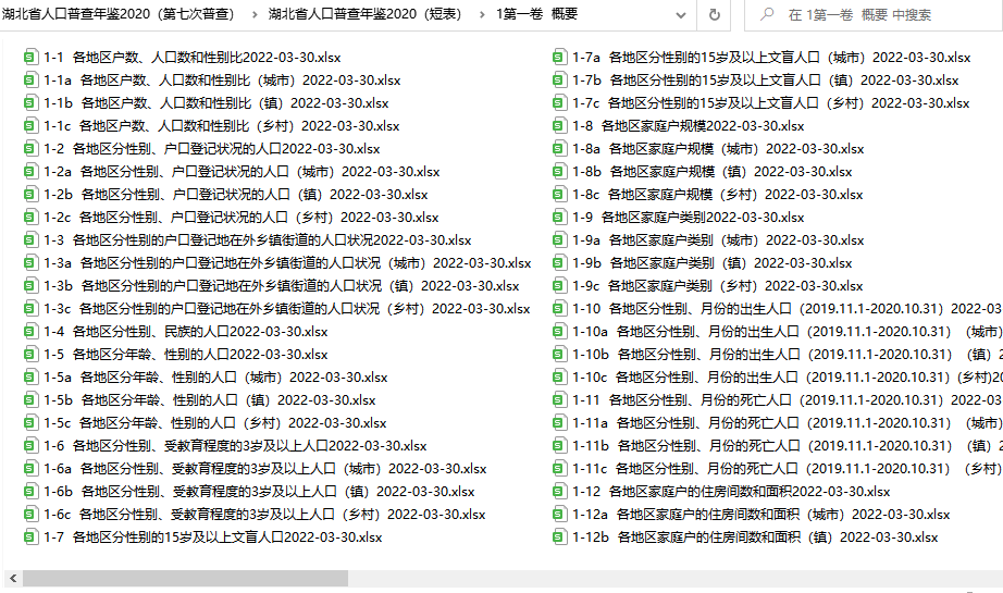 湖北人口普查年鉴2020(excel格式)