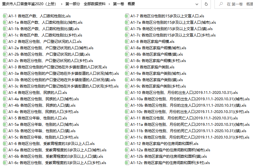 重庆人口普查年鉴2020(excel格式)【免费下载】