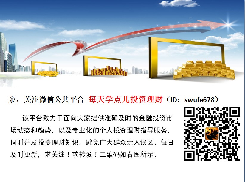 你好,欢迎关注微信公众平台:每天学点儿投资理财!账号ID:swufe678。该平台致力于面向大家提供准确及时的金融投资市场动态和趋势,以及专业化的个人投资理财指导服务,同时普及投资理财知识,避免广大群众走入误区。每日及时更新,求关注!(求转发)二维码如下