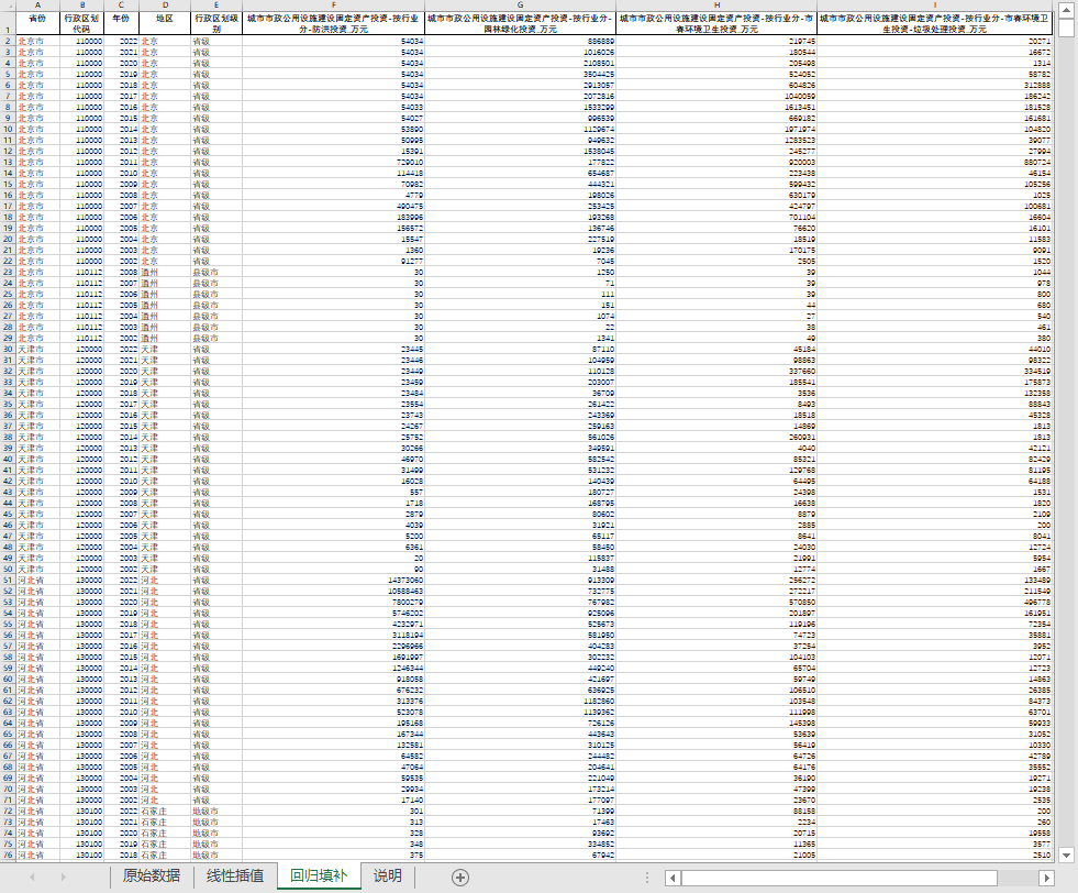 excel数据文件包原始数据(由于多年度指标不同存在缺失值)、线性插值、回归填补三个版本,提供您参考使用。
