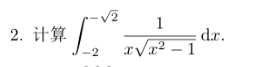 \[\begin{align*}\int_{-2}^{-\sqrt{2}}\frac{1}{x\sqrt{x^2-1}}dx