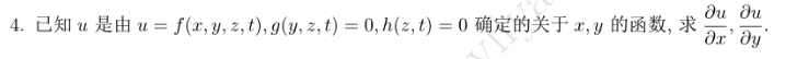 \end{cases}\]于是\[\frac{\partial u}{\partial x}=\frac{\frac{\partial (F,G,H)}{\partial (x,z,t)}}{\frac{\partial (F,G,H)}{\partial (u,z,t)}},\]\[\frac{\partial u}{\partial y}=\frac{\frac{\partial (F,G,H)}{\partial (y,z,t)}}{\frac{\partial (F,G,H)}{\partial (u,z,t)}},\]