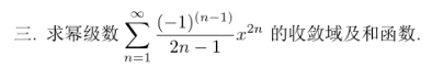 \[\displaystyle\sum_{n=1}^{\infty}\frac{(-1)^{n-1}}{2n-1}x^{2n}=x\displaystyle\sum_{n=1}^{\infty}\frac{(-1)^{n-1}}{2n-1}x^{2n-1}.\]\[(x\displaystyle\sum_{n=1}^{\infty}\frac{(-1)^{n-1}}{2n-1}x^{2n-1})'=\displaystyle\sum_{n=1}^{\infty}\frac{(-1)^{n-1}}{2n-1}x^{2n-1}+x\displaystyle\sum_{n=1}^{\infty}(-1)^{n-1}x^{2n-2}.\]\[\because x\displaystyle\sum_{n=1}^{\infty}(-1)^{n-1}x^{2n-2}=\frac{x}{1+x},\]\[(\displaystyle\sum_{n=1}^{\infty}\frac{(-1)^{n-1}}{2n-1}x^{2n-1})'=\frac{1}{1+x}.\]\[\therefore (x\displaystyle\sum_{n=1}^{\infty}\frac{(-1)^{n-1}}{2n-1}x^{2n-1})'=\ln(1+x)+\frac{x}{1+x}.\]\begin{align*}\displaystyle\sum_{n=1}^{\infty}\frac{(-1)^{n-1}}{2n-1}x^{2n} &=\int(\ln(1+x)+\frac{x}{1+x})dx \\