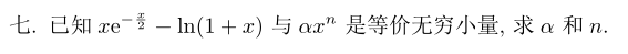 由泰勒展开公式得\[xe^{-\frac{x}{2}}=x\displaystyle\sum_{n=0}^{\infty}\frac{(-\frac{x}{2})^n}{n!}.\]\[\ln (1+x)=\displaystyle\sum_{n=0}^{\infty}\frac{(-1)^n}{n+1}x^{n+1}=\displaystyle\sum_{n=1}^{\infty}\frac{(-1)^{n-1}}{n}x^{n}.\]