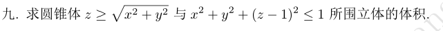 因此所求体积为\[\frac{2}{3}\pi+\frac{1}{3}\pi=\pi.\]