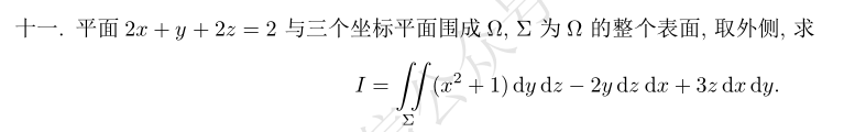 &=\iint\limits_{\Sigma }(x^2+1)dydz-2ydzdx+3zdxdy \\
