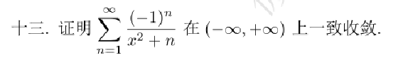\[\because |\frac{(-1)^n}{x^2+n}|\le \frac{1}{n}=0,(n\to\infty)\]