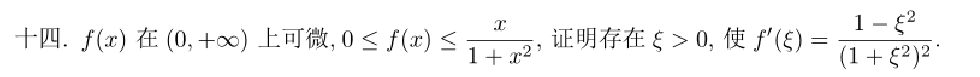 由中值定理可知\[\exists \xi\in (0,+\infty),s.t. F'(\xi)=f'(\xi)-\frac{1-\xi}{(1+\xi^2)^2}=0.\]