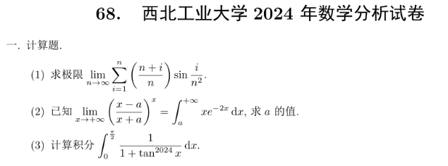 &=\frac{\pi}{2}-\int_{0}^{\frac{\pi}{2}}\frac{\cos ^{2024}x}{\cos ^{2024}x+\sin ^{2024}x}dx,(x=\frac{\pi}{2}-x) \\