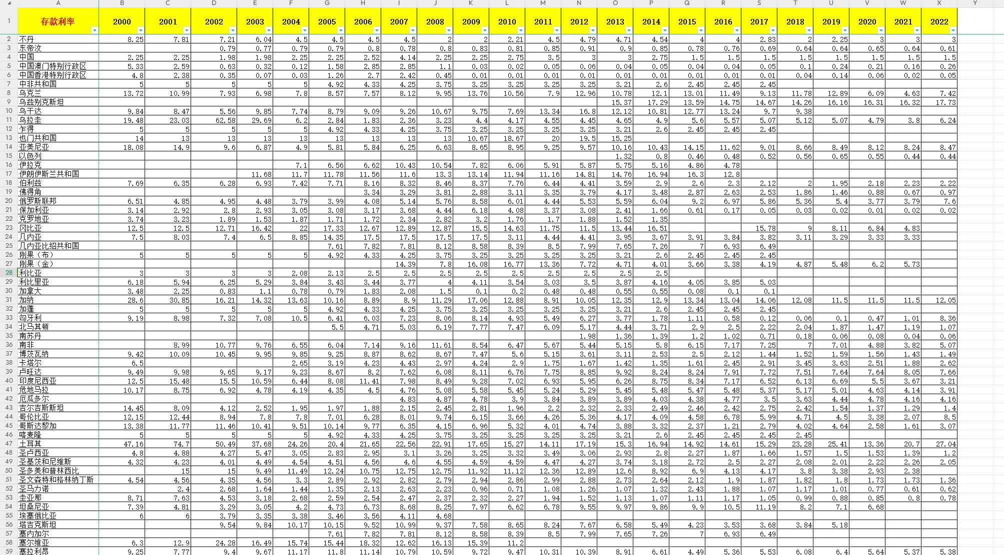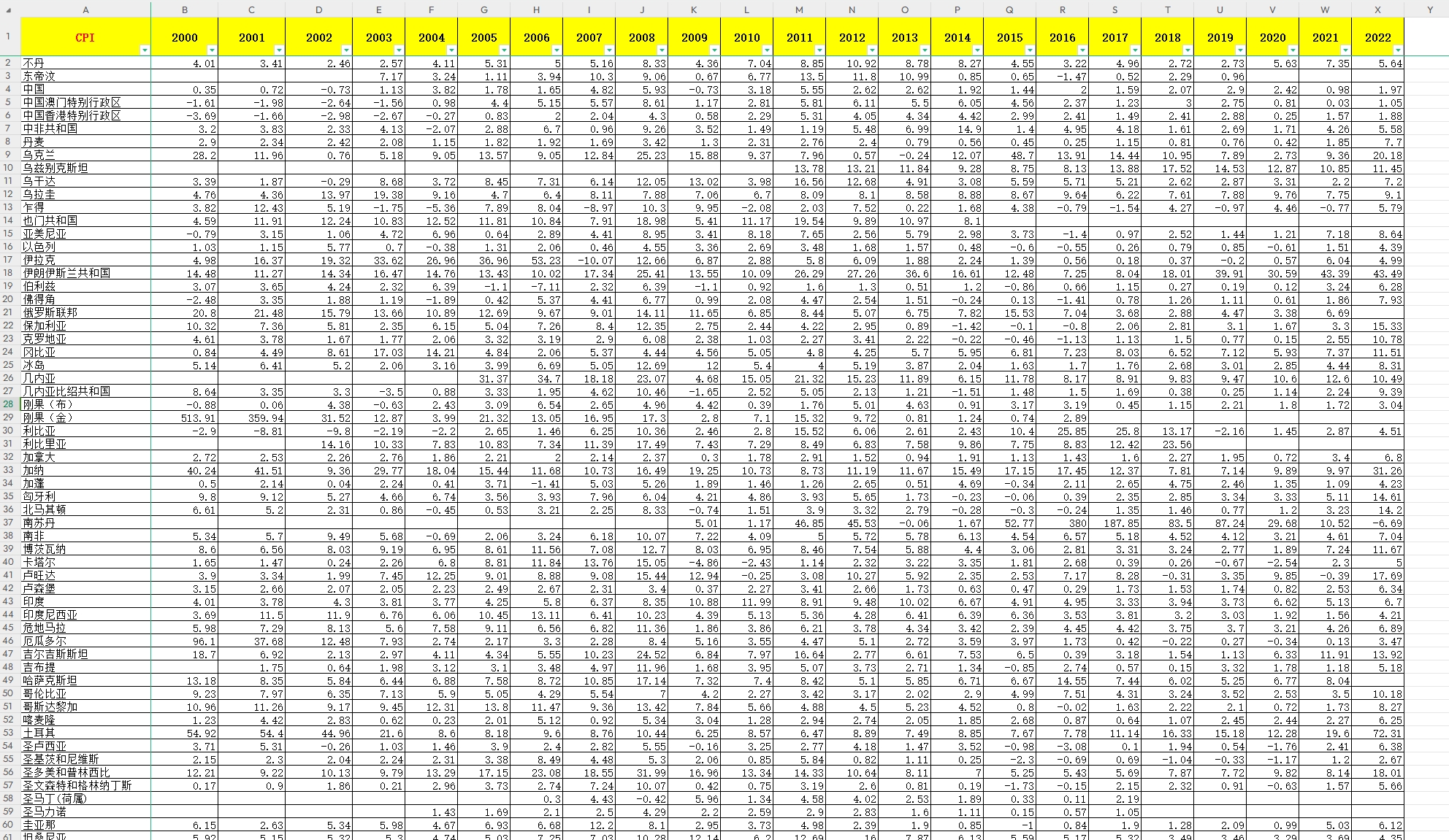 2000-2022年 200多个国家 全球各国 基尼系数 CPI 存款利率 贷款利率 利差 通货膨胀率