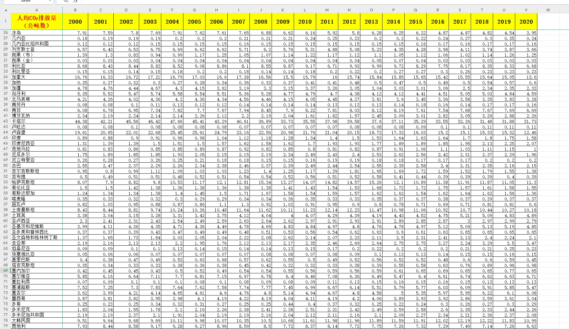 2000-2020年 200多个国家 全球各国 人均CO2排放量.xlsx