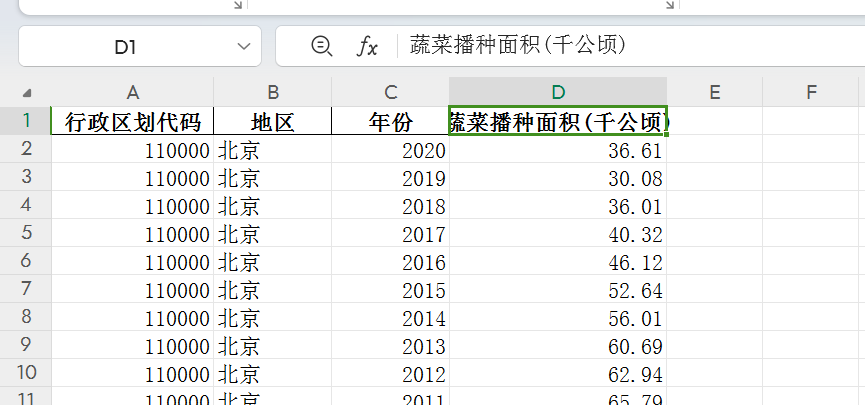 省级蔬菜播种面积(千公顷)2000-2020省级蔬菜播种面积(千公顷)2000-2020