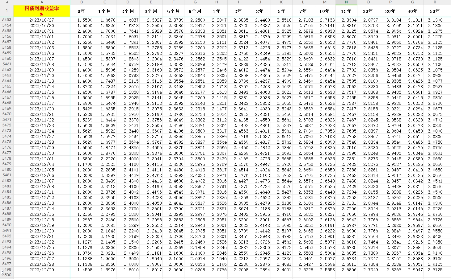 2002年-2023年末 中债国债到期收益率 6个月 1年 10年 30年 等 各期限国债收益率