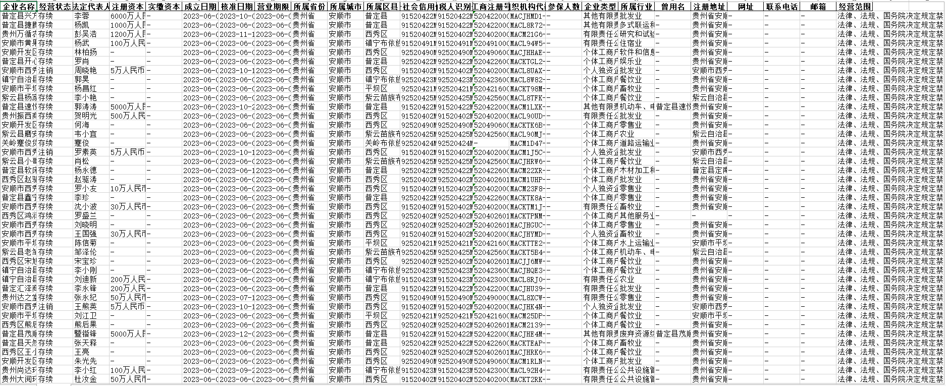 1949-2023年中国工商企业注册全量数据-全国31省企业名称经营状态法人注册资本实缴资本等