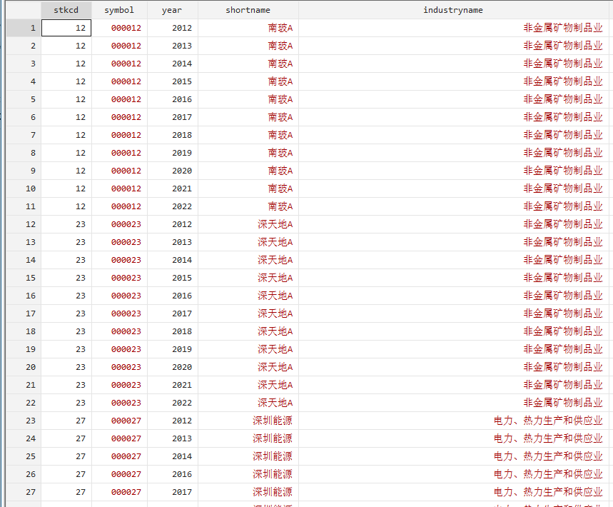 本数据集更新至2022年最新数据,对重污染企业进行整理,并剔除ST和金融类企业,并参考鲁桐,党印. 公司治理与技术创新:分行业比较 [J]. 经济研究, 2014, 49 (06): 115-128.以证监会的行业分类为基础,剔除金融行业后,将制造业的细分行业与其他行业并列,按行业的要素密集情况进行聚类分析,将最终的21个行业划分为劳动密集型、资本密集型和技术密集型三类。行业分为资产密集/劳动密集/技术密集企业,方便进行异质性分析。
