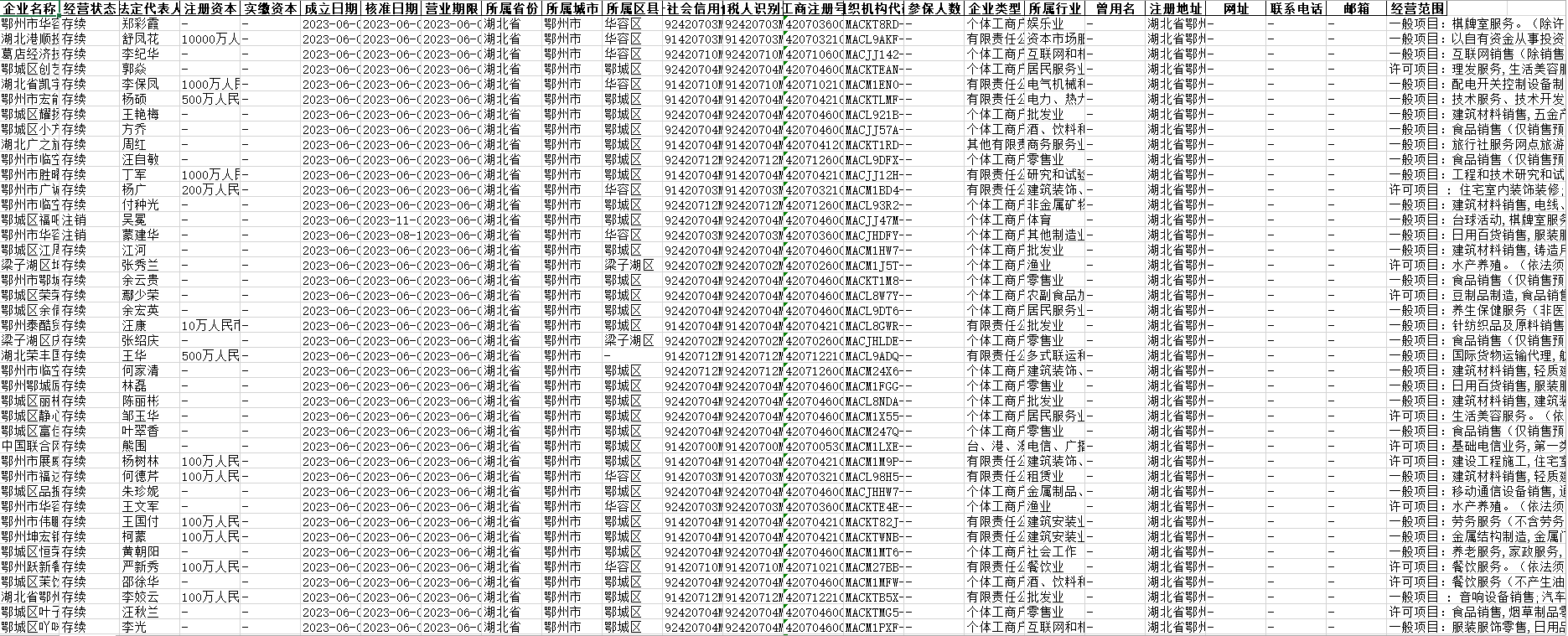 1949-2023年中国工商企业注册全量数据-全国31省企业名称经营状态法人注册资本实缴资本等