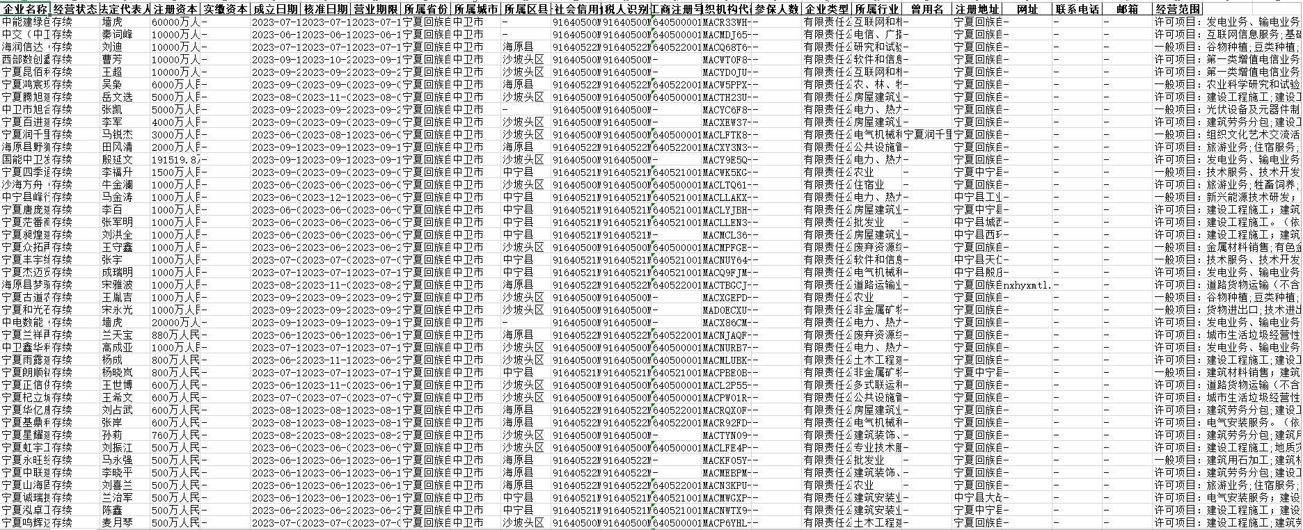 1949-2023年中国工商企业注册全量数据-宁夏自治区中卫吴忠固原石嘴山银川注册资本等