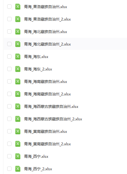 青海省:玉树藏族自治州、西宁、黄南藏族自治州、海西蒙古族自治州、海南藏族自治州、海东、海北藏族自治州、果洛藏族自治州