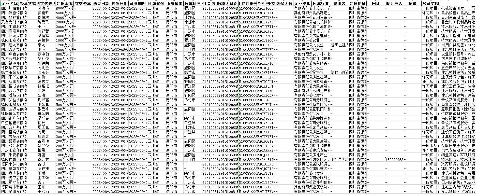 1949-2023年中国工商企业注册全量数据-全国31省企业名称经营状态法人注册资本实缴资本等