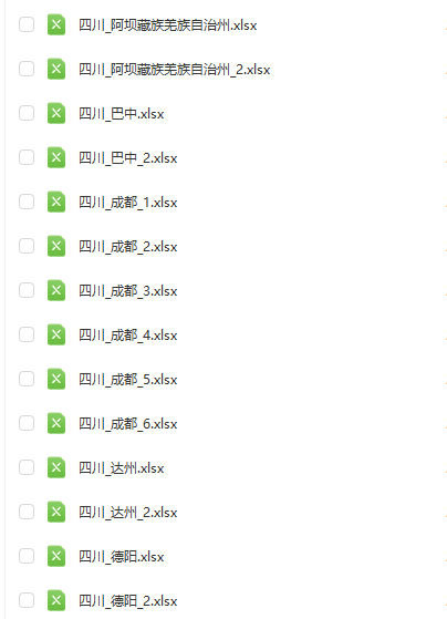四川省:乐山、内江、凉山彝族自治州、南充、宜宾、巴中、广元、德阳、成都、攀枝花、泸州、甘孜藏族自治州、眉山、绵阳、自贡、资阳、达州、遂宁、阿坝藏族自治州、雅安