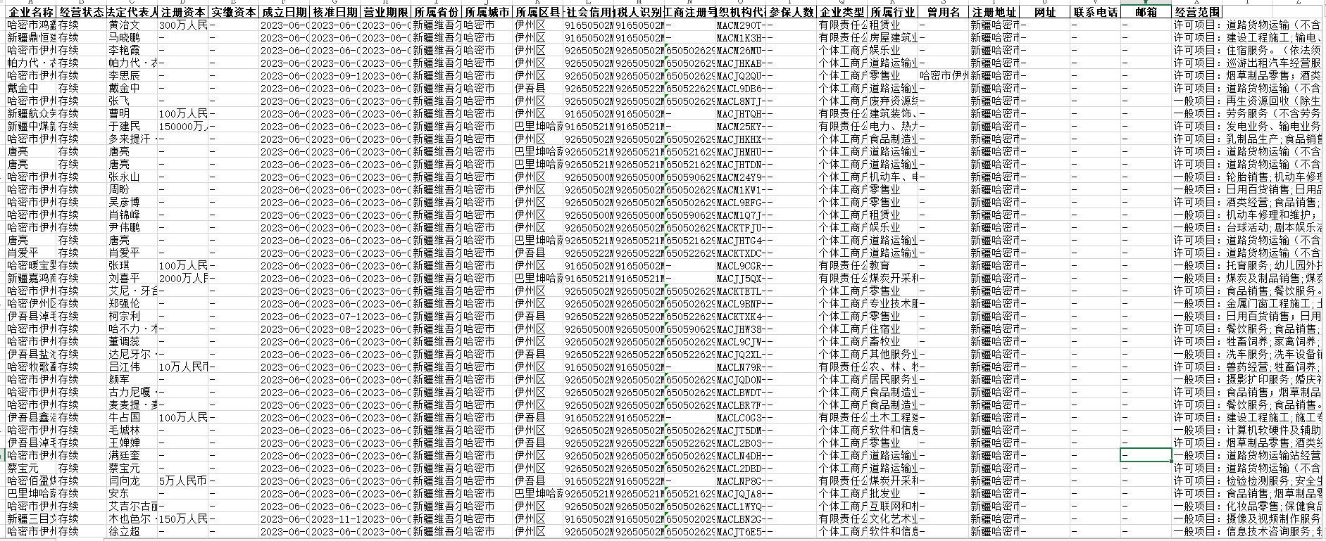 1949-2023年中国工商企业注册全量数据-新疆自治区