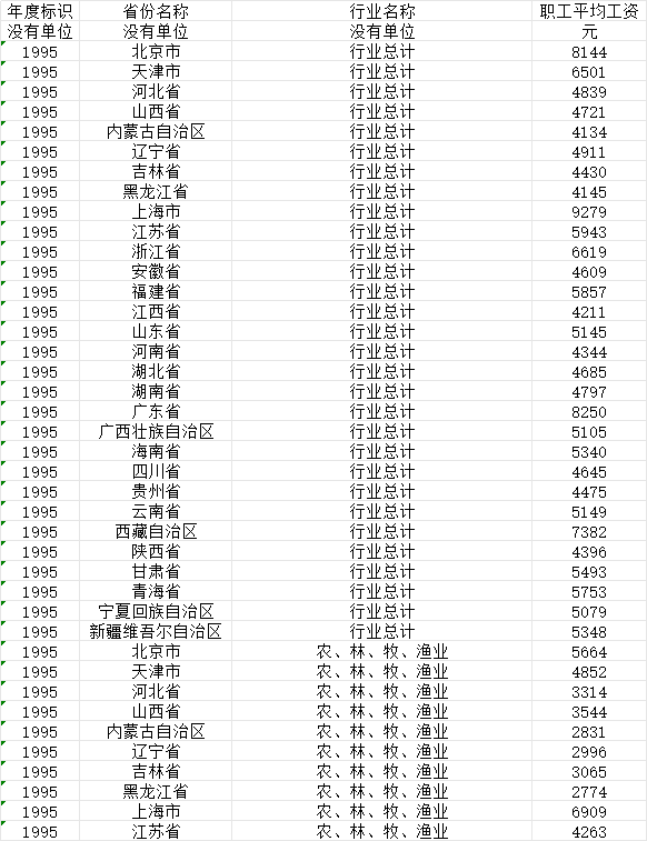 全国31个省份1995-2022年不同行业职工平均工资数据.xlsx