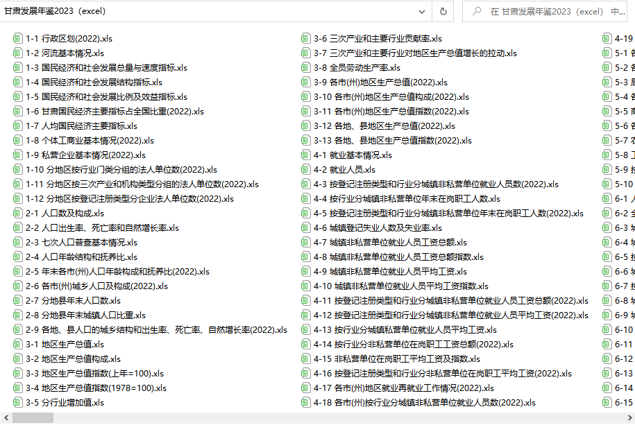 甘肃发展年鉴2023【即甘肃统计年鉴2023】(excel格式)