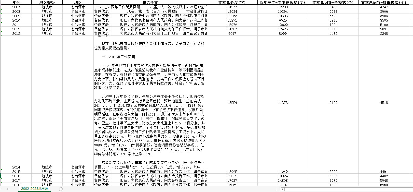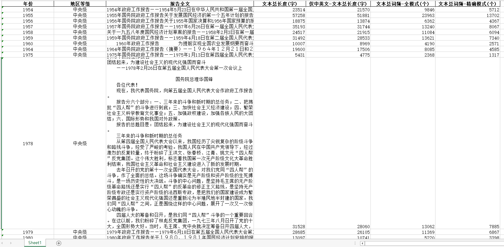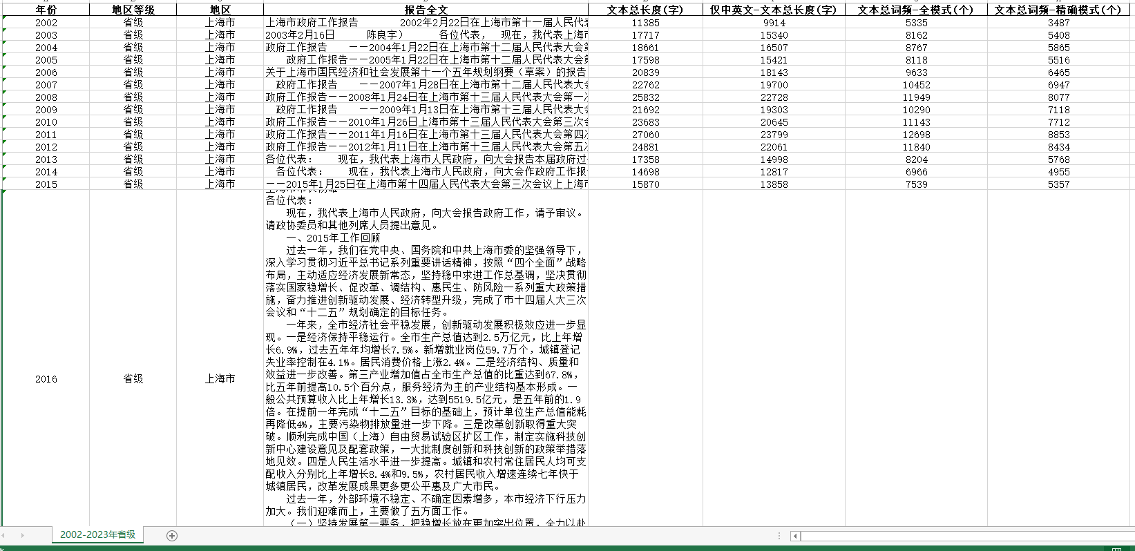 1954-2023年中央省级地市级三个层级ZF工作报告文本数据excel面板数据