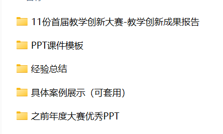 共计1.2GB资料,包括创新报告、课件模板、可直接套用说课模板15套、历年大赛部分PPT以及教学设计资料搜集