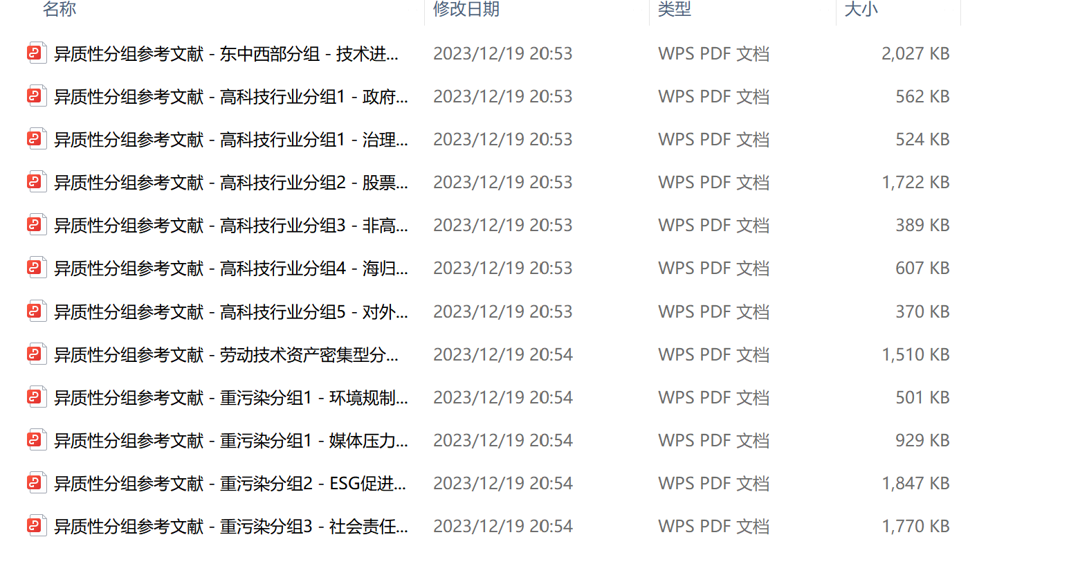 常用异质性分组