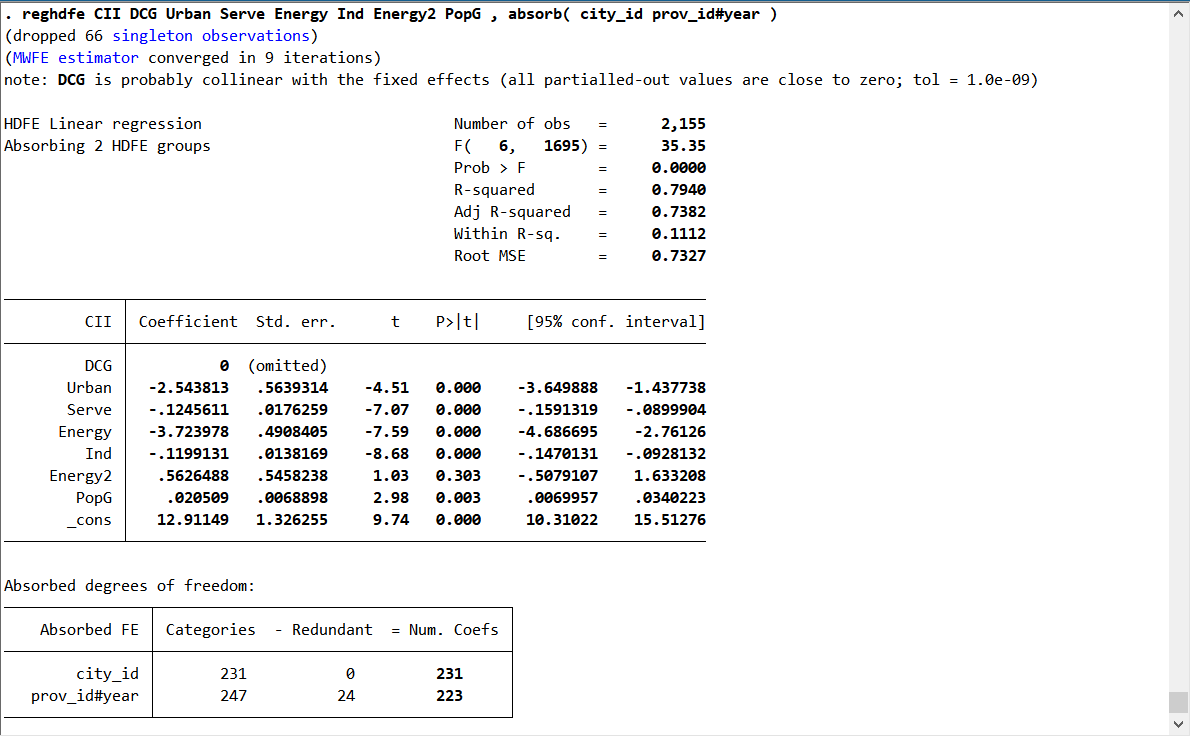 kkbjcm 发表于 2024-1-13 18:41 请问这种情况该怎么解决呢?stata小白刚学,因为之前是加双向固定不显著,然后想看看交互固定效应能不能显 ...
