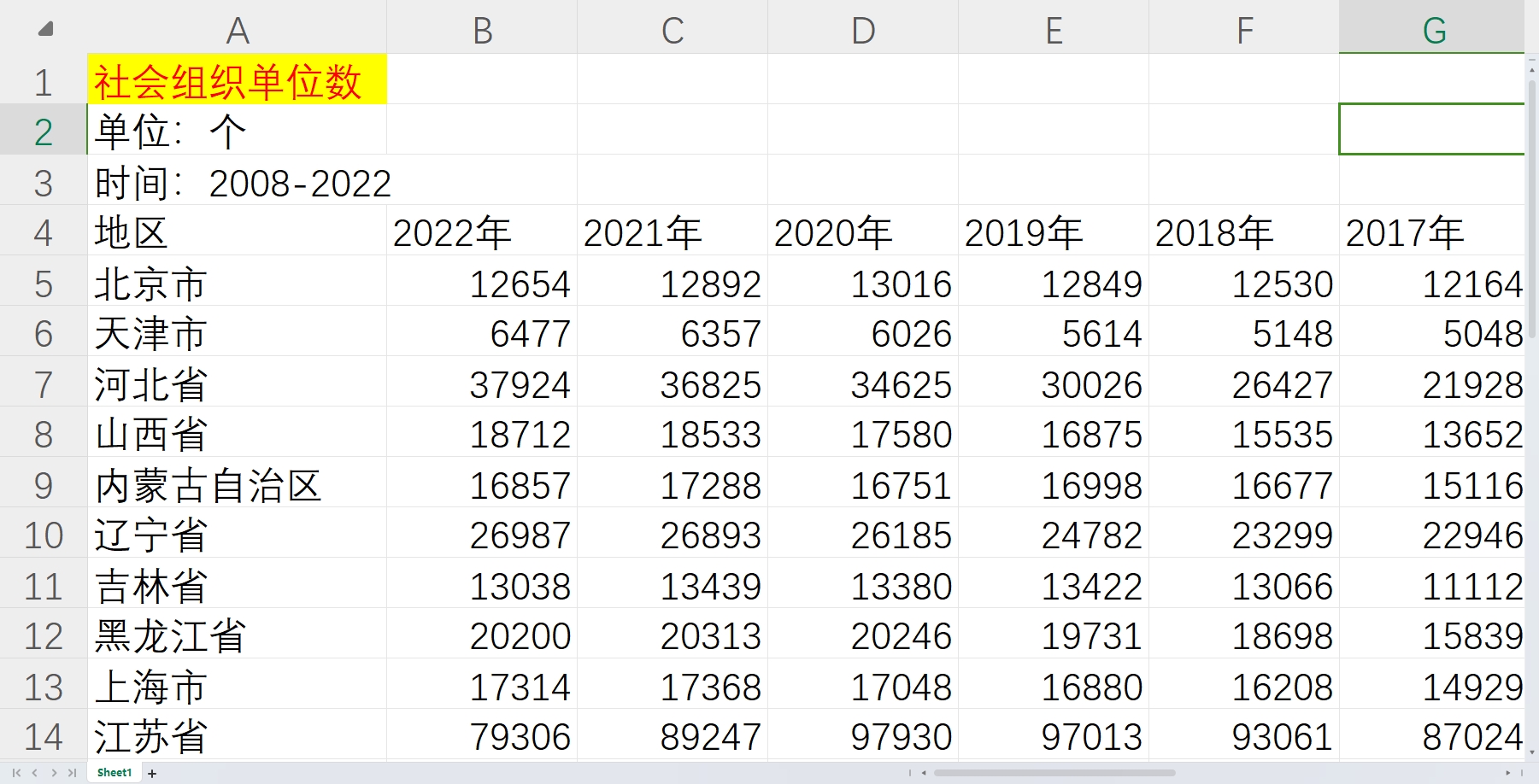 2000-2022年 31省 各省 省级 社会组织 基金会 民办非企业 自治组织 社区居委会 村民居委会 单位数