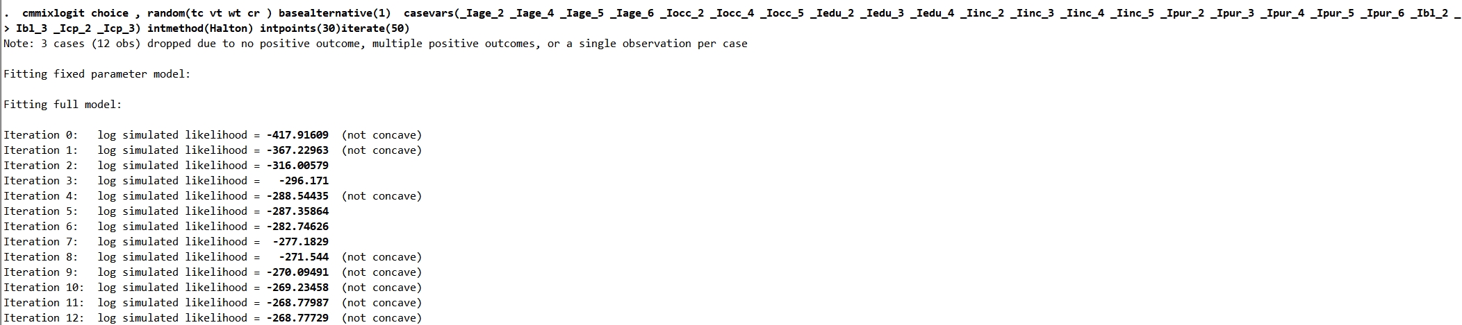 随机参数logit模型不收敛问题,stata