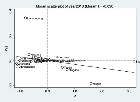 空间计量-莫兰散点图-STATA中moranplot命令-splagva和spatlsa无法编辑达到目标求助!