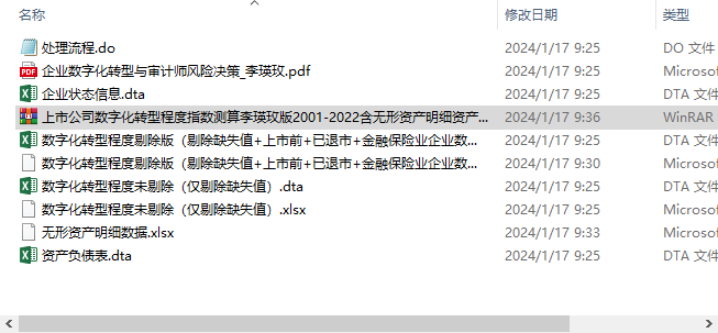上市公司数字化转型程度指数测算李瑛玫版2001-2022含无形资产明细资产负债表原始数据.zip