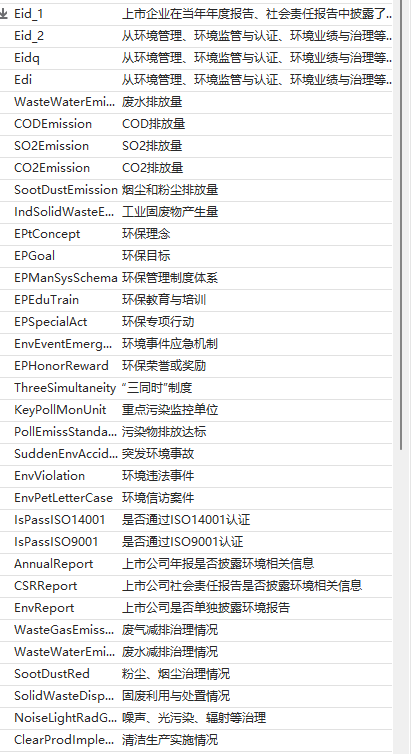 ,涵盖公司层面环境研究基本上所有数据(含有环境信息披露、污染以及常用环境分组)