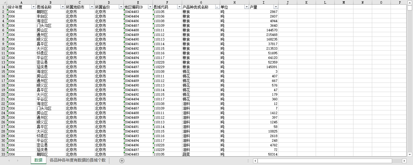 北京市各区县域农产品产量2000-2021.xlsx